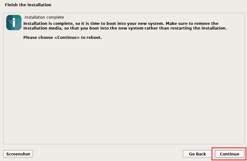 finish the installation安装完成:选择continue→进行重启完成安装