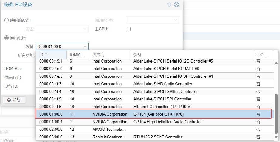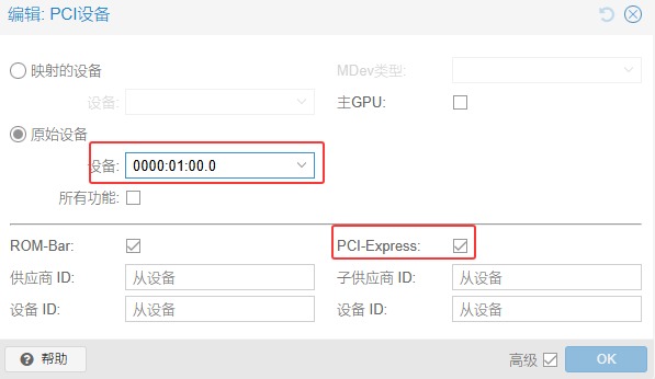 右下角勾选√ 高级:硬件→添加pci设备→原始设备→设备:找到显卡比如1070如下图→pci-express 勾选 √→添加完成
