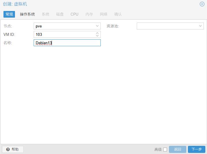 名称:例如 Debian13