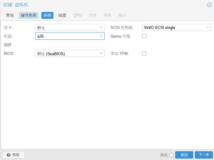 一、PVE创建虚拟机界面如下,具体配置如下: