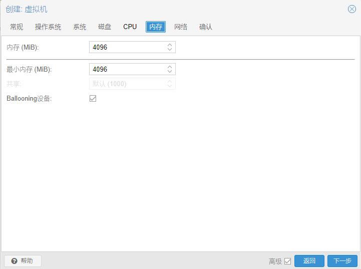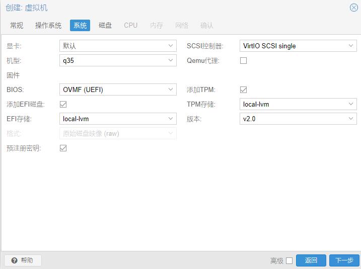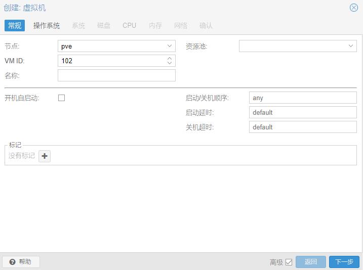 一、PVE创建虚拟机界面如下,打开高级选项具体配置如下: