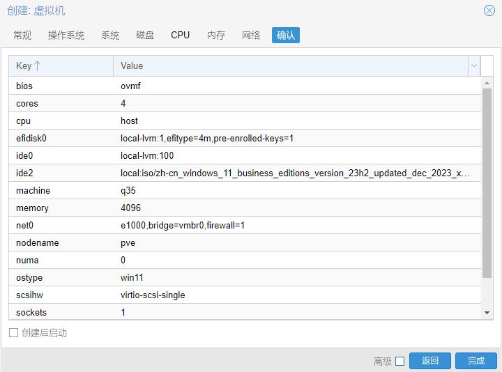 PVE虚拟机安装Windows 11 23H2系统,具体设置如下