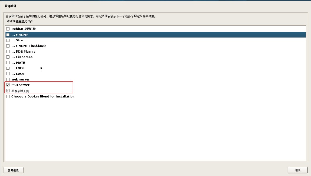 默认桌面环境选择,再增加√勾选 SSH server