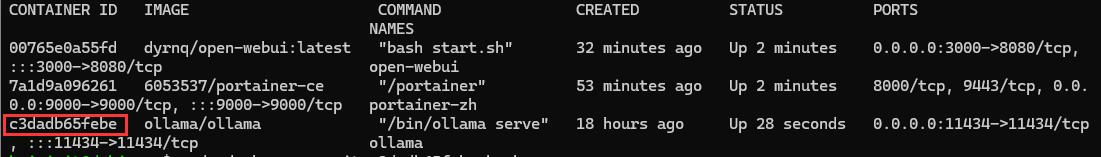 sudo docker ps sudo docker exec -it c3dadb65febe bash ollama pull llama3 ollama pull qwen:7b