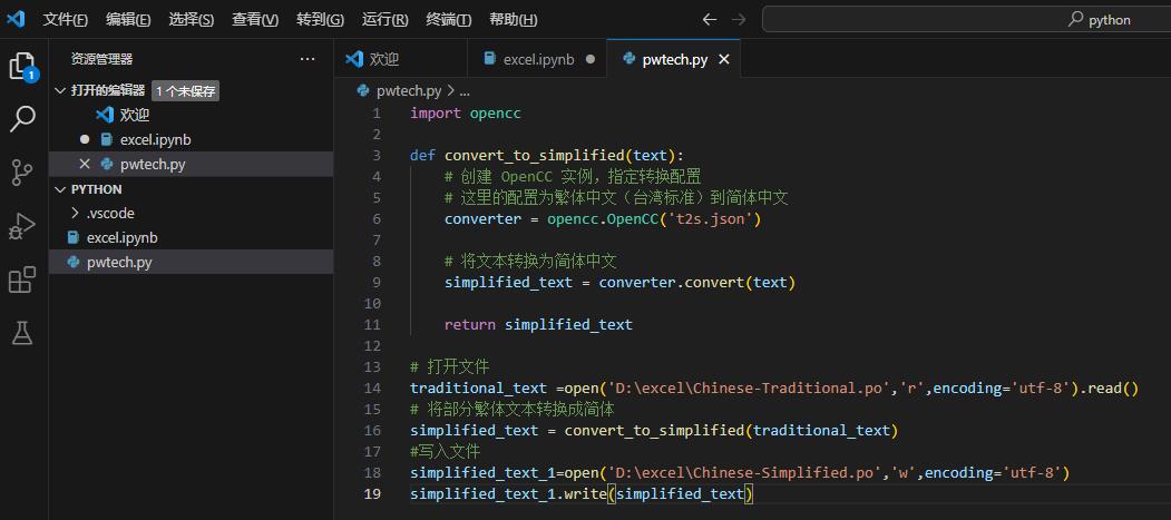 # 创建 OpenCC 实例,指定转换配置
