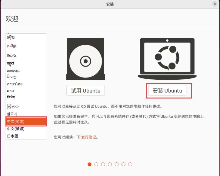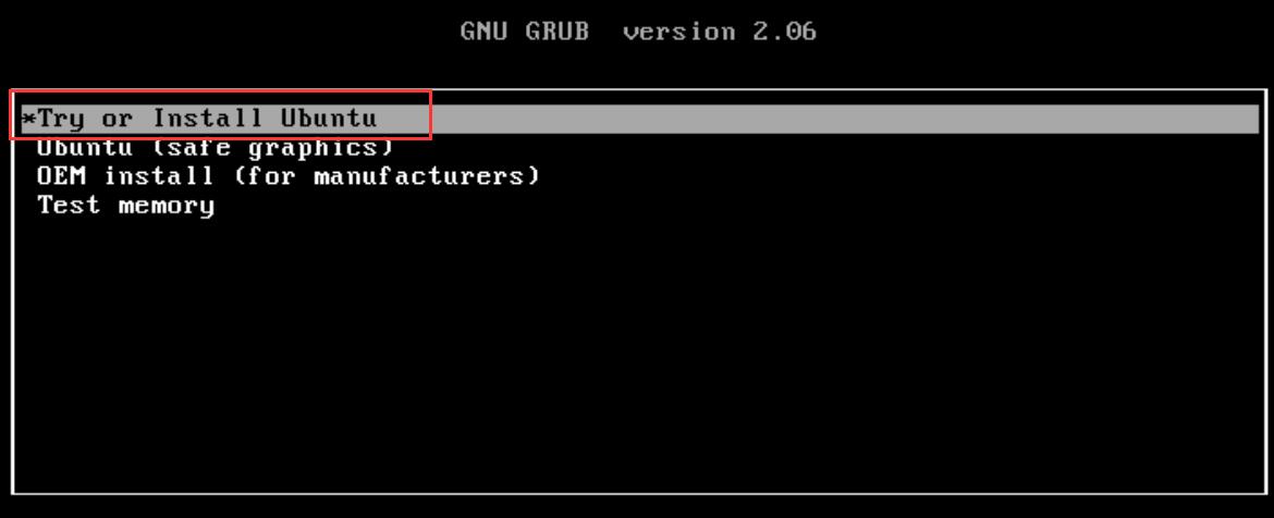 1.安装启动界面选择默认第一项 try or install ubuntu