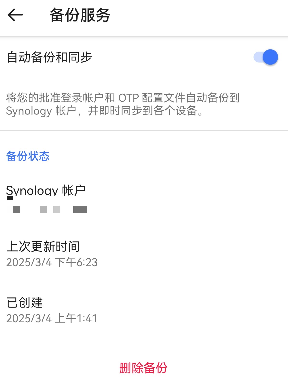 原手机已经设置好批准登陆账户和OTP配置文件便于群晖账户的双重验证,具体说明下备份文件后,如何在同步在另外一部手机上: