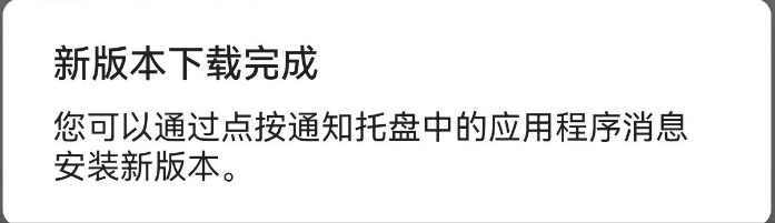 新版本下载完成 您可以通过点按通知托盘中的应用程序消息安装新版本。