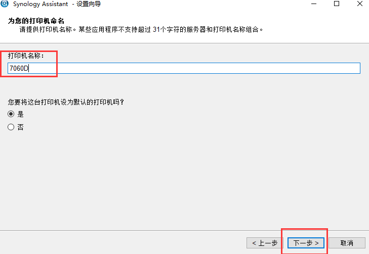 点击下一步,输入打印机名称如:7060D,点击下一步即可安装完成