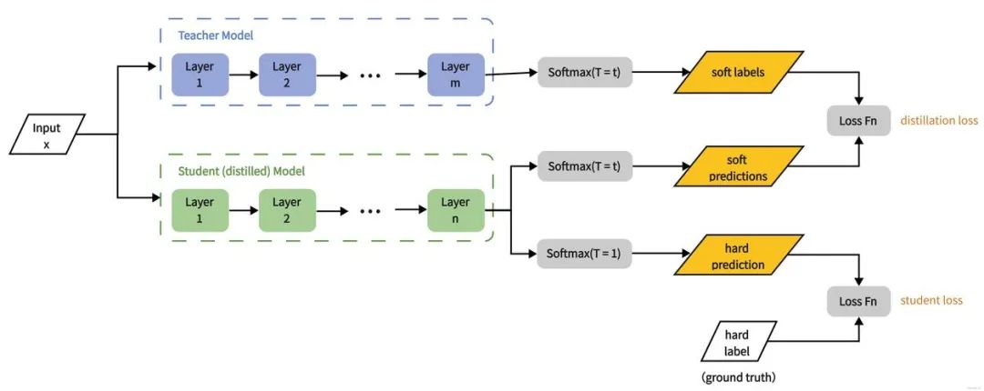 学生模型的训练:使用教师模型的输出作为监督信号,对较小的学生模型进行训练。