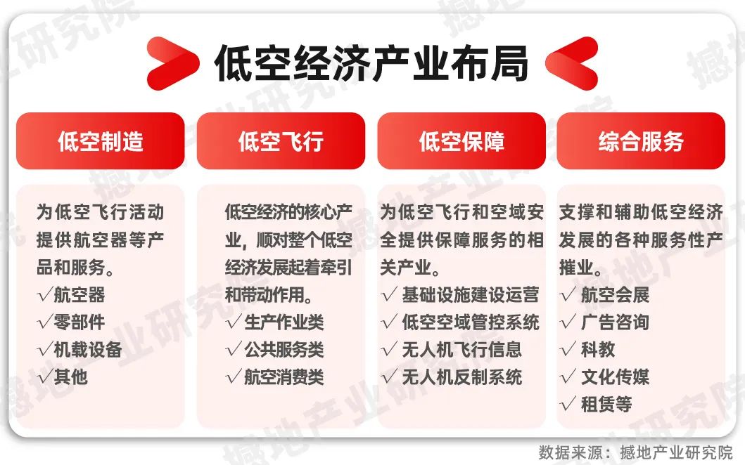 低空飞行产业则是指通用、警用、海关等各类低空飞行活动,主要由生产作业类、公共服务类、航空消费类等产业构成。