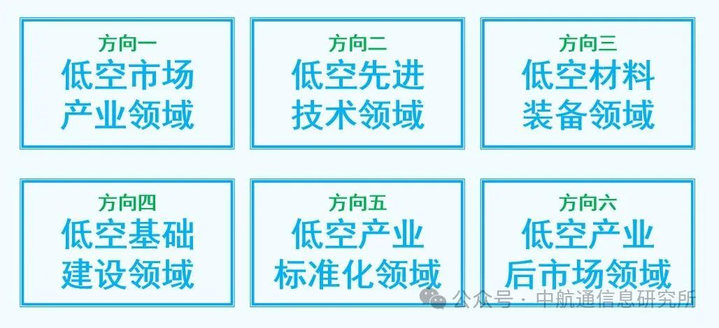 结合以上对低空产业发展趋势的分析,以下是整理的低空经济产业关注方向的建议,主要为六大产业方向:
