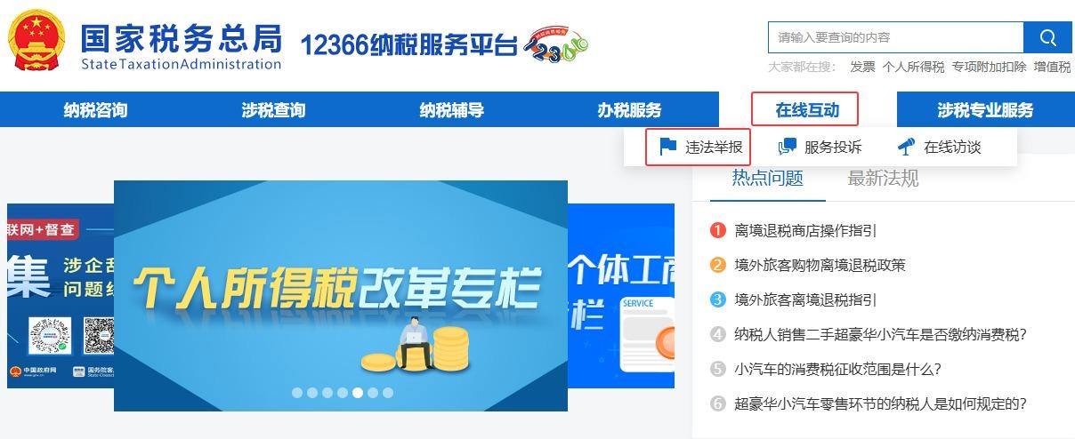 网上投诉:https://12366.chinatax.gov.cn/ 【在线互动】→【违法举报】