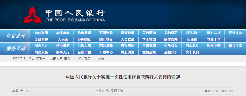 为积极应对新冠疫情后续影响,支持信用受损但积极还款的个人高效便捷重塑信用,助力经济持续回升向好,中国人民银行决定实施一次性信用修复政策。现就有关安排通知如下: