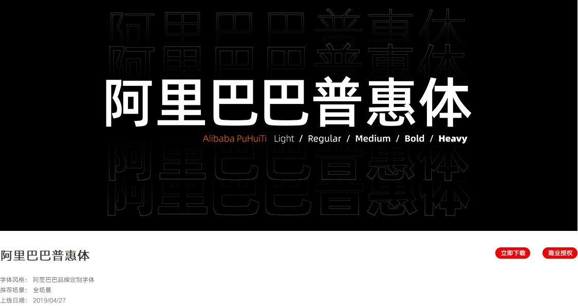 2019年4 月 27日,在阿里巴巴 UCAN 2019 设计大会上,阿里巴巴设计委员会对外发布了一款名为“阿里巴巴普惠体”的官方正文字体,这款字体将被广泛应用在阿里里巴巴建筑空间、硬件设备、各产品客户端等九大场景,全方面支持复杂且多样的使用环境,从品牌的维度把所有场景设计整合并凝聚。