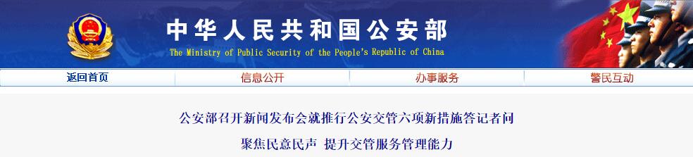 公安部召开新闻发布会就推行公安交管六项新措施答记者问:聚焦民意民声 提升交管服务管理能力 原文链接地址:http://www.mps.gov.cn/n6557563/c6684856/content.html