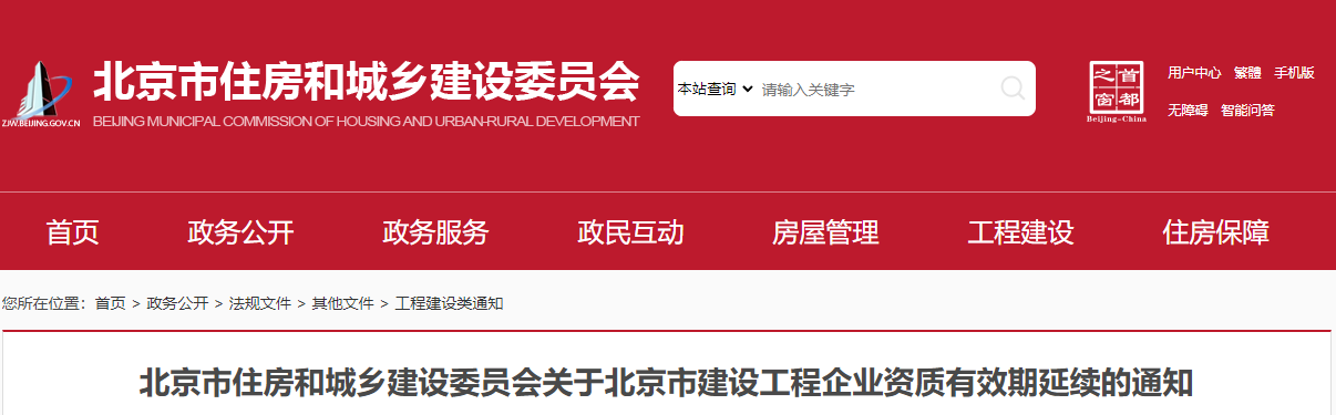 北京市住房和城乡建设委员会关于北京市建设工程企业资质有效期延续的通知
