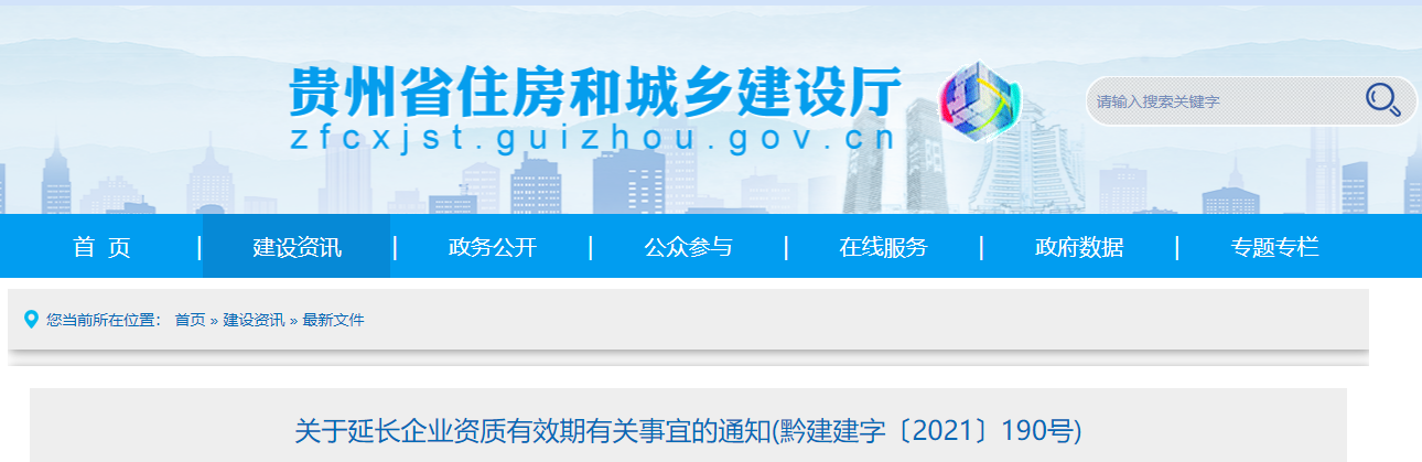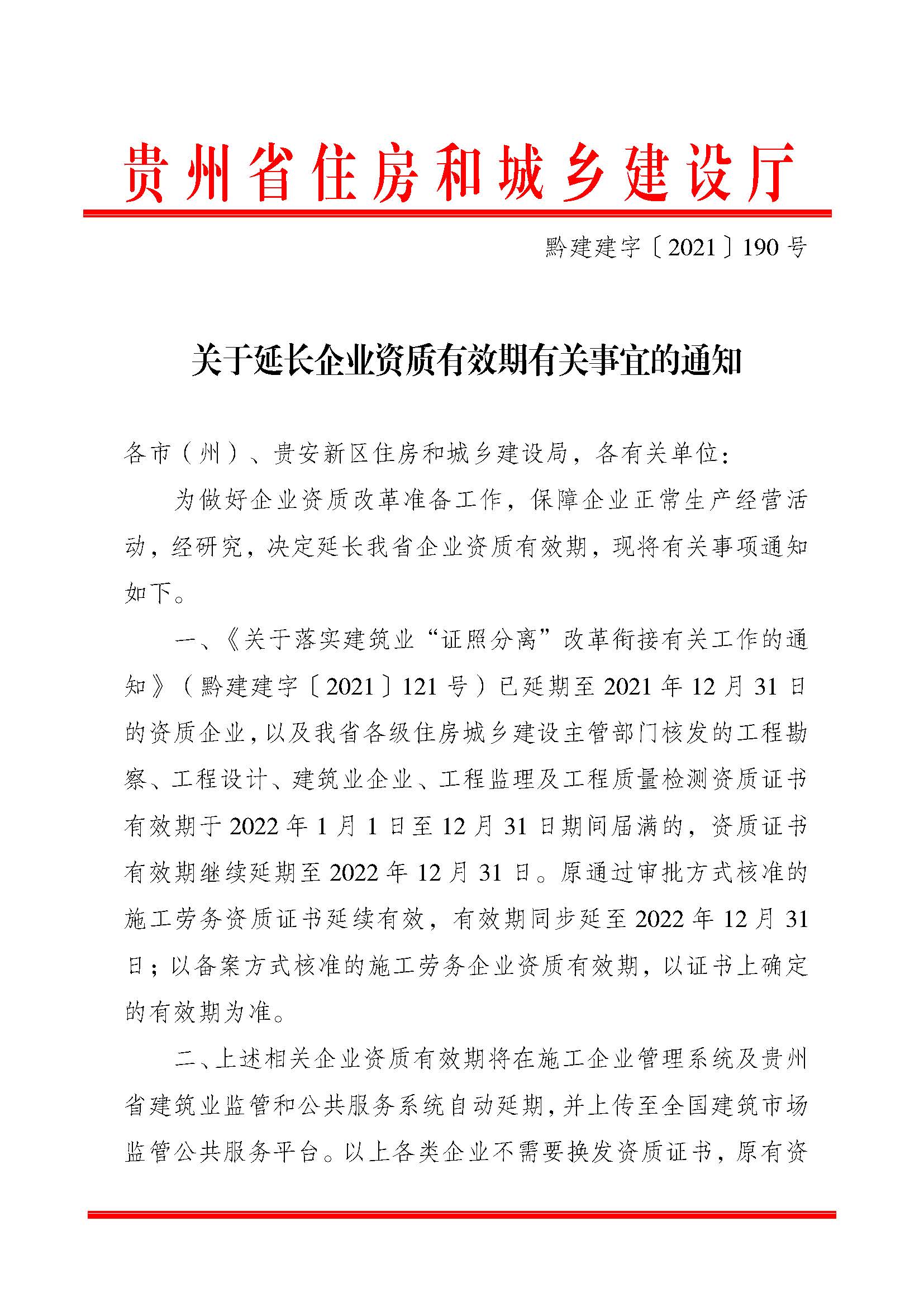 关于延长企业资质有效期有关事宜的通知(黔建建字〔2021〕190号)