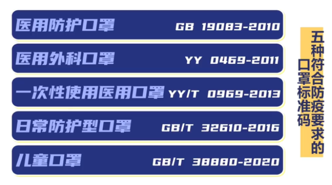 正规的口罩外包装应标注执行标准码,真正能达到防疫要求的只有这五种编码: