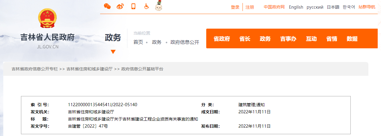 为落实《住房和城乡建设部办公厅关于建设工程企业资质有关事宜的通知》(建办市函〔2022〕361号)和《支持建筑业企业发展若干措施的通知》(吉政办发〔2022〕10号)要求,进一步优化建筑市场营商环境,减轻企业负担,激发市场主体活力,现将有关事项通知如下。