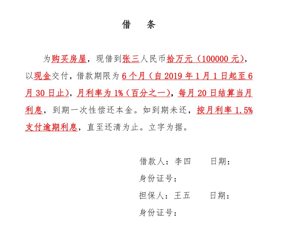 打借条时要核对借款人身份证原件并复印,或要求借款人将出生年月、住址或身份证号等个人信息写在借条上。