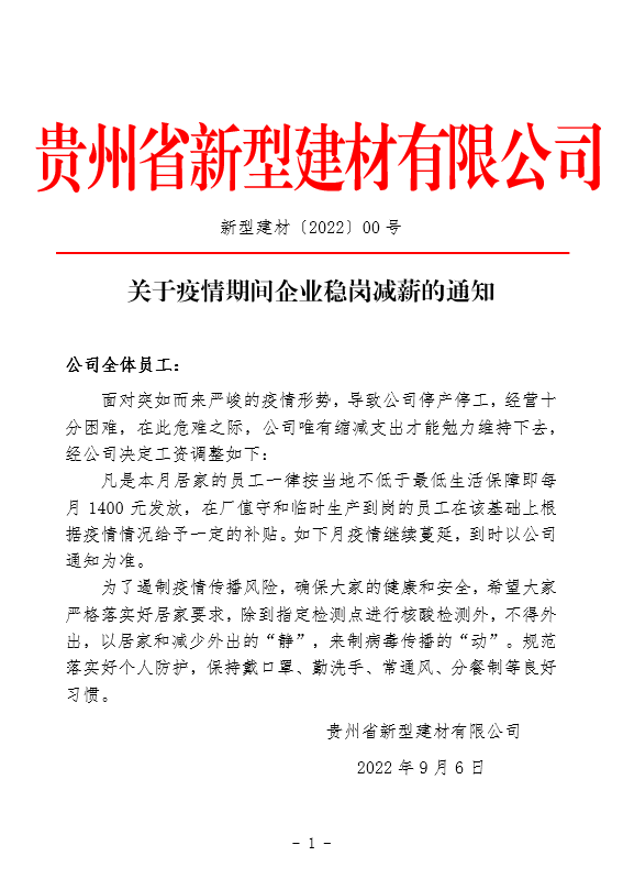 面对突如而来严峻的疫情形势,导致公司停产停工,经营十分困难,在此危难之际,公司唯有缩减支出才能勉力维持下去,经公司决定工资调整如下: