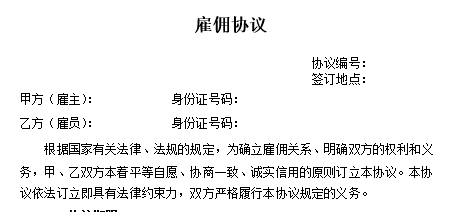 根据国家有关法律、法规的规定,为确立雇佣关系、明确双方的权利和义务,甲、乙双方本着平等自愿、协商一致、诚实信用的原则订立本协议。本协议依法订立即具有法律约束力,双方严格履行本协议规定的义务。